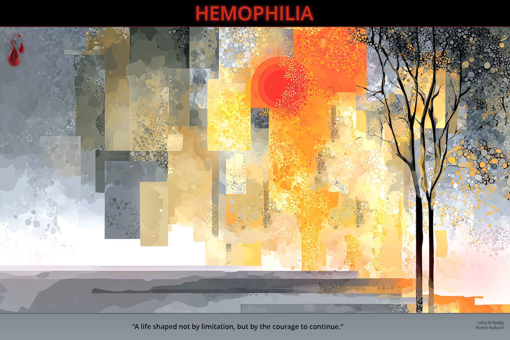 This gallery is not just about hemophilia or Bleeding Disorders—it’s about the lives shaped by it. Each image carries the weight of a diagnosis, the rhythm of adaptation, and the quiet courage of continuing. For those who live with bleeding disorders, art becomes more than expression—it becomes witness. It speaks when words falter. It holds space for pain, for resilience, for the questions that have no easy answers.